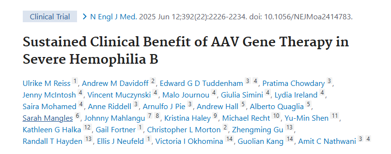 Background: Adeno-associated virus (AAV)-mediated gene therapy has emerged as a promising treatment for hemophilia B. Data on safety and durability from 13 years of follow-up in a cohort of patients who had been successfully treated with scAAV2/8-LP1-hFIXco gene therapy are now available.