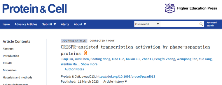 Fig.1 Screenshot of Protein & Cell official website