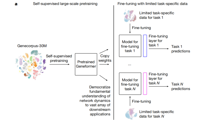 To achieve this, the research team first generated a gene expression dataset - Genecorpus-30M using public data, which included about 30 million single-cell transcriptomic data from a wide range of human body tissues. Then, the research team used this dataset to pre-train a deep learning model - Geneformer, developed based on transfer learning, to enable basic predictions about gene network dynamics.