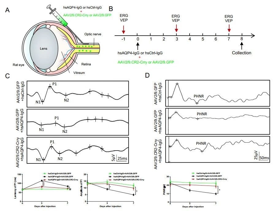 图4  AAV2/9.CR2-Crry改善NMOSD视神经局部大鼠模型的视功能损害