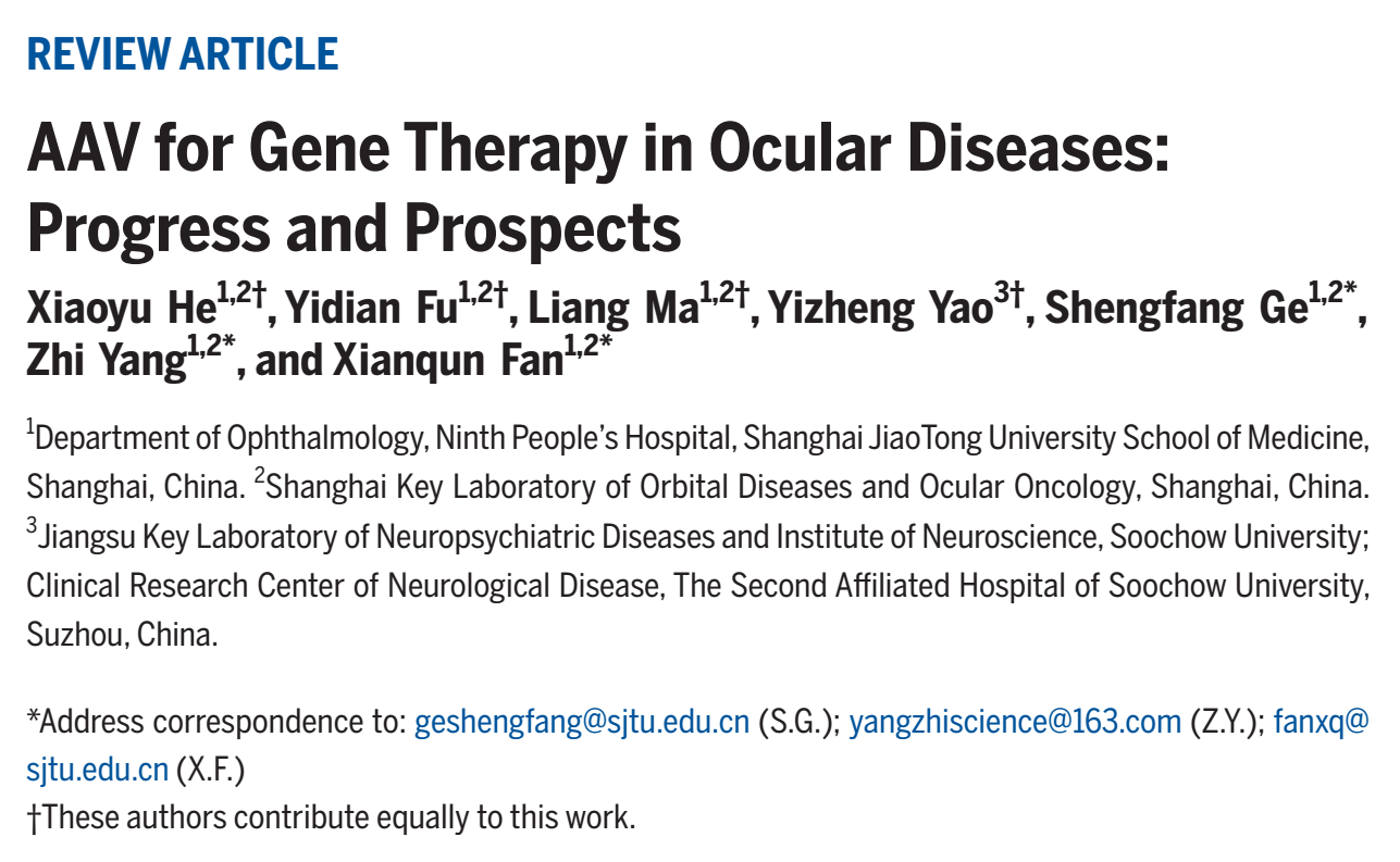 Research | Academician Xianqun Fan's Team at Shanghai Jiao Tong University: Progress and Prospects of AAV in Gene Therapy Applications for Eye Diseases