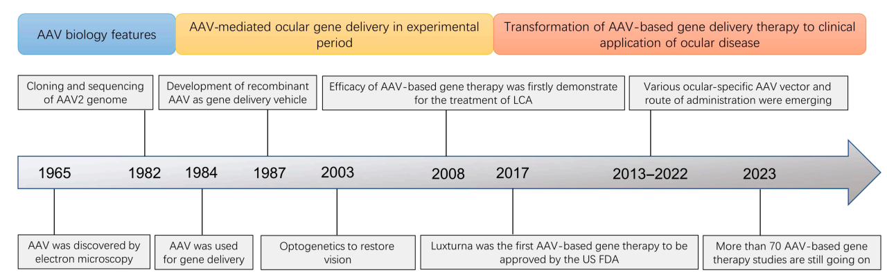 Initially, AAV (Adeno-associated virus) was isolated during the preparation process of adenovirus. As its sequence was cloned and with the advancement of recombinant technology, it gradually became clear that AAV is a relatively safe biological source. Consequently, AAV began to be used as a delivery vector for gene therapy. With its widespread application in optogenetics and the treatment of other monogenic hereditary eye diseases, more researchers have focused on proposing new gene therapy strategies for eye diseases by optimizing AAV's delivery pathways and modifying AAV's genomic components, and pushing forward towards clinical translation.