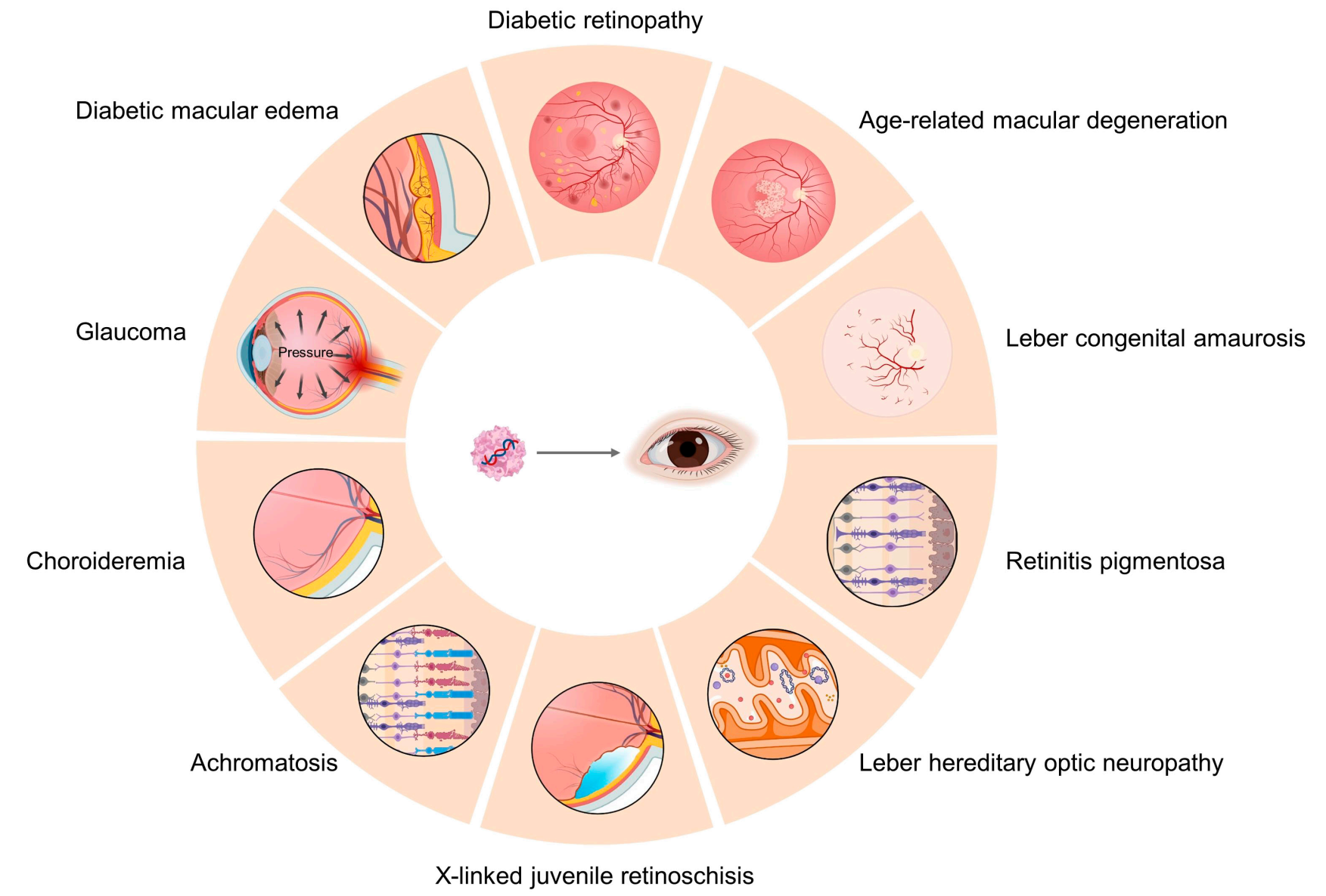 Currently, the advancement of AAV in clinical research is thriving, with continuous development of AAV delivery strategies for various types of eye diseases. Retinal monogenic hereditary diseases such as Leber's congenital amaurosis, retinitis pigmentosa, Leber's hereditary optic neuropathy, congenital retinoschisis, and choroideremia were among the first to be treated with AAV gene therapy, achieving good therapeutic effects. In recent years, common non-monogenic eye diseases such as age-related macular degeneration, diabetic retinopathy, and glaucoma have also seen significant therapeutic effects through optimized AAV targeting treatment strategies. Various institutions have expanded the application range of AAV in eye diseases by advancing clinical trials.