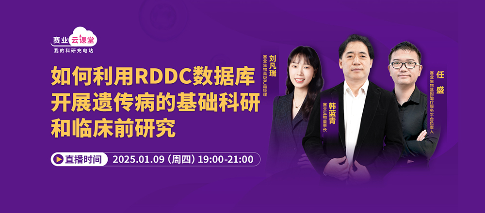 为了加强大家对RDDC的深入了解与实操应用,1月9日(本周四)晚7点,联盟将通过联盟单位赛业生物的云课堂,与您相约「如何利用RDDC开展遗传病的基础科研和临床前研究」线上学术沙龙!
