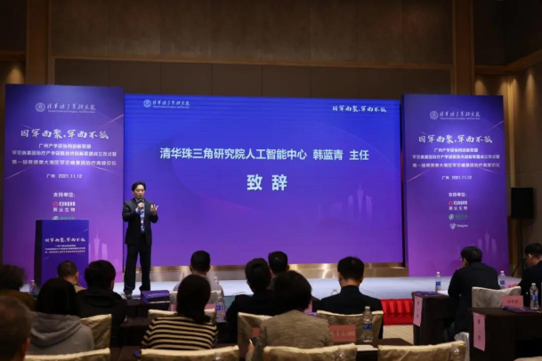 广州市科学技术局二级调研员、广州市科学技术局产学研结合处吕晓峰副处长,联盟牵头单位清华珠三角研究院吴邦明副院长,澳门大学健康科学学院邓初夏院长,中山大学附属第三医院杨钦泰副院长和清华珠三角研究院人工智能创新中心韩蓝青主任对本次大会发表精彩致辞,表达了对联盟的期许,并对联盟及论坛的顺利举行表示热烈祝贺。同时因疫情等原因未能亲临现场的蔻德罕见病中心黄如方主任和中山大学中山眼科中心林浩添副院长也对本次大会送上了精彩的视频祝福。