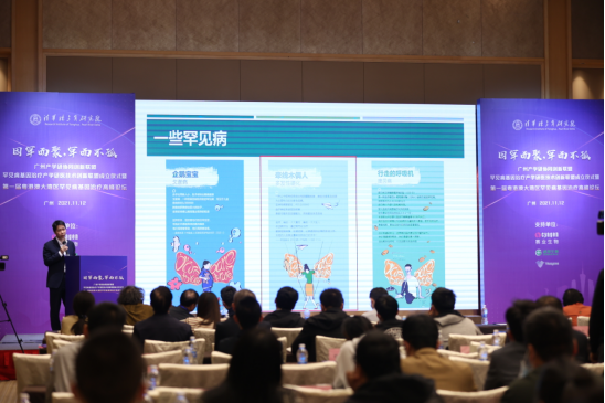 图1.邱伟教授在广州罕见病基因治疗联盟举办的讲座中普及罕见病知识