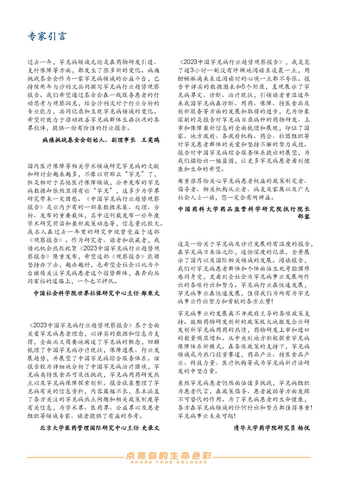 近期,病痛挑战基金会联合弗若斯沙利文咨询公司共同发布了《2023中国罕见病行业趋势观察报告》,报告旨在回顾梳理中国罕见病在诊断、用药、保障、特医食品及创新服务等方面的发展,概述这一领域在过去面临的问题和取得的进步,并对中国罕见病综合服务体系提出展望,希望对中国罕见病领域的政策制定者、倡导者、相关机构从业者、罕见病病友以及广大社会关注人群有所助益。