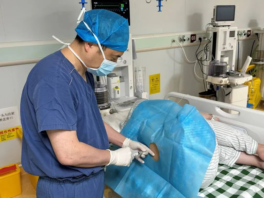 图3.麻醉科刘晓军教授在给患者注射诺西那生钠治疗(图片来源:南方医院白云分院)