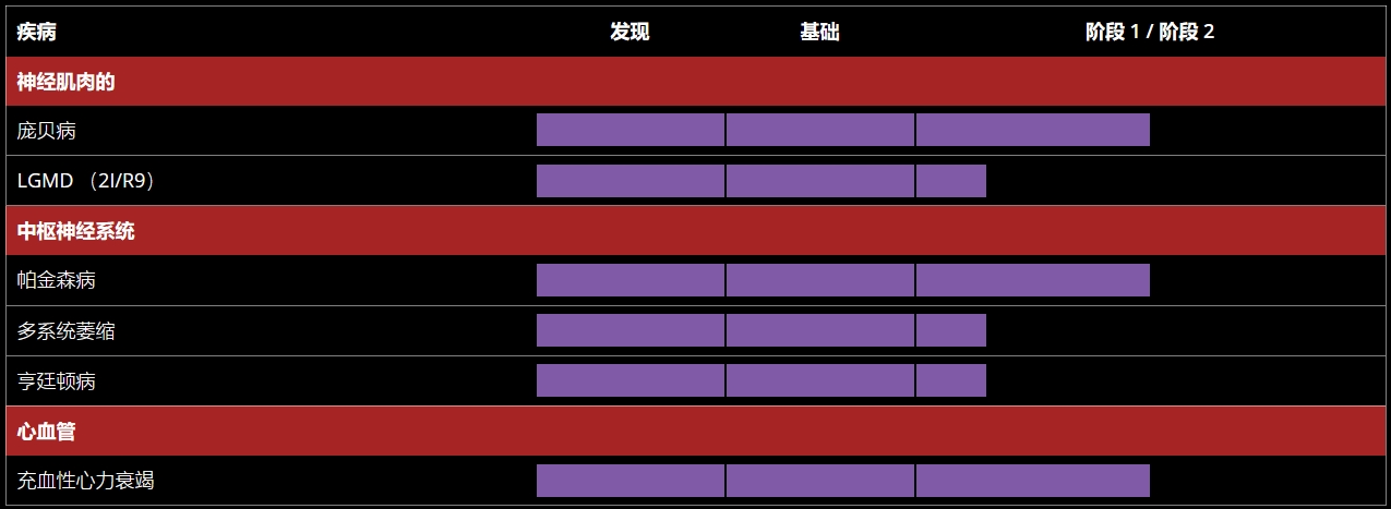 Asklepios BioPharmaceutical的子公司Viralgen,专注于研发AAV基因治疗药物,AskBio尝试将基因疗法作为治疗遗传性疾病的潜在方法,旨在为患有遗传病患者提供新的选择。除了LGMD R9,AskBio的基因疗法还涉及充血性心力衰竭、多系统萎缩和帕金森病等。