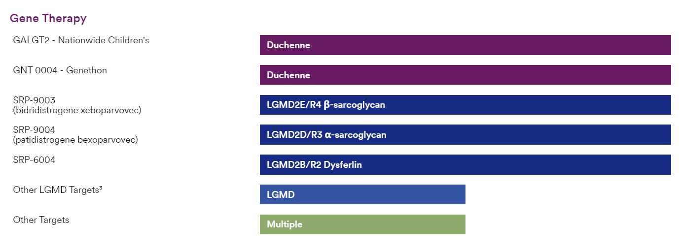 图2 Sarepta的基因疗法研发管线  来源:Sarepta官网