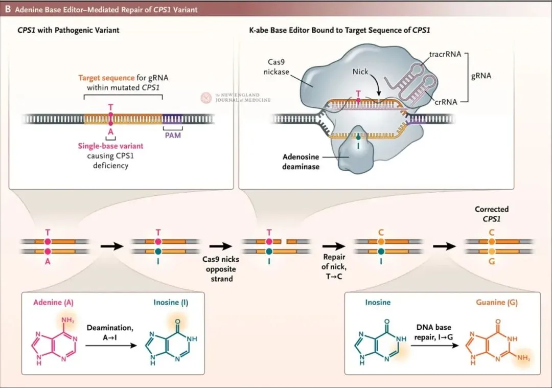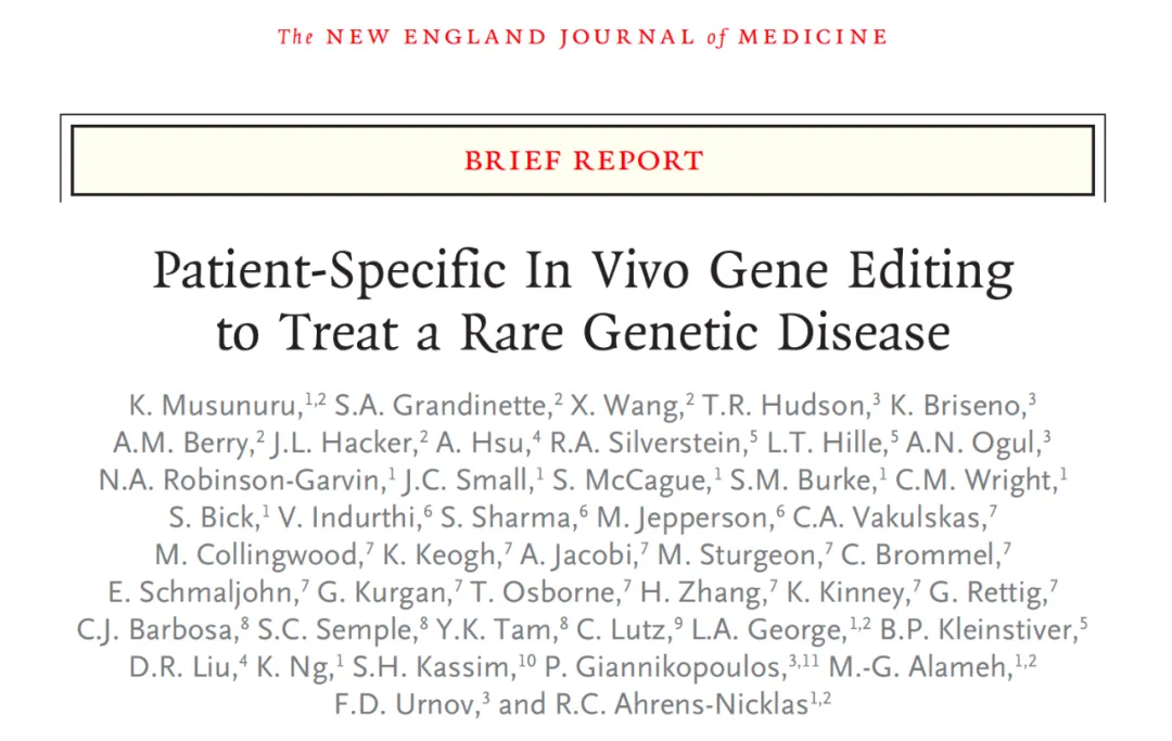 该研究以:Patient-Specific In Vivo Gene Editing to Treat a Rare Genetic Disease为题,于 2025 年 5 月 15 日发表在了《新英格兰医学杂志》(NEJM),详细介绍了这款定制的体内碱基编辑疗法的开发和治疗过程。