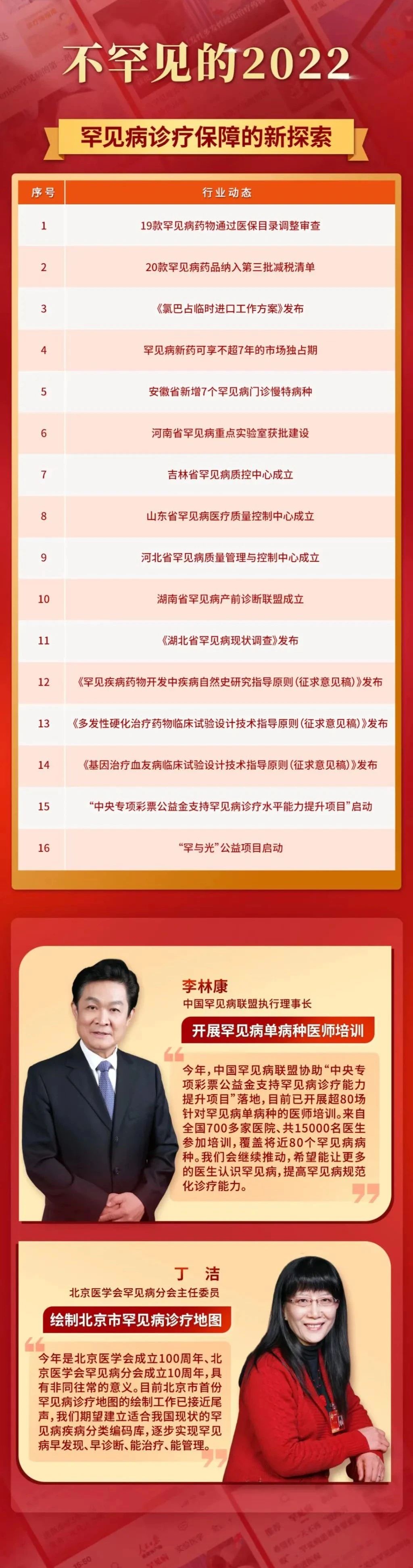 毫无疑问,罕见病领域获得了越来越多的关注,并逐渐成为社会热点话题。2022年罕见病领域有哪些重磅行业动态需要关注?有哪些行业空白尚需填补?中国罕见病联盟执行理事长李林康、北京医学会罕见病分会主任委员丁洁对2022年罕见病行业动态做出了总结点评。