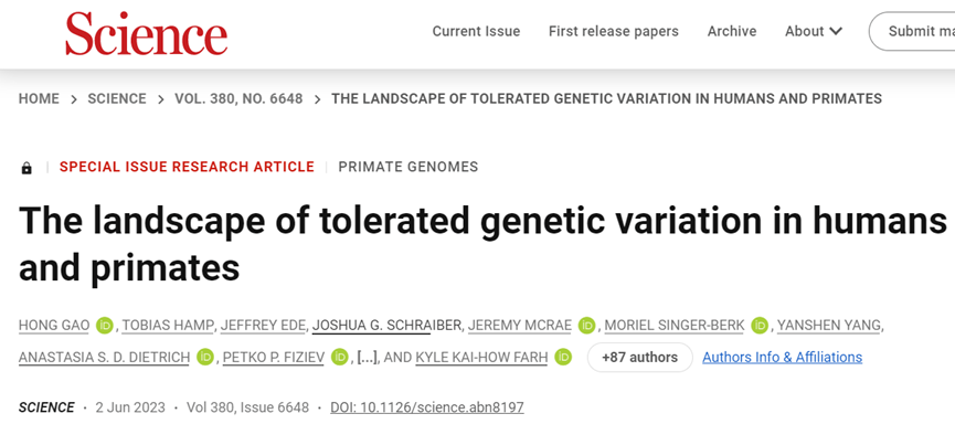 Science|人类和灵长类动物中可耐受的遗传变异图谱