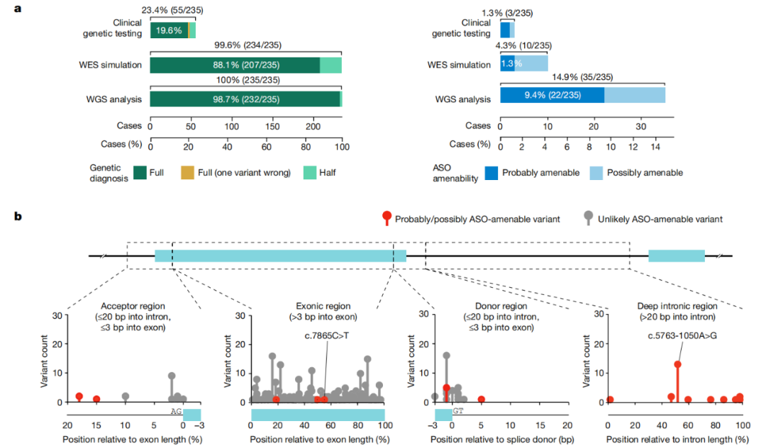 之前的研究表明,在某些情况下,剪接转换ASO可以恢复功能蛋白水平,并能安全、及时地给药。这种治疗为罕见遗传病提供了一个治疗机会。然而,如何识别适合这种治疗的基因变异个体仍然是一个挑战。