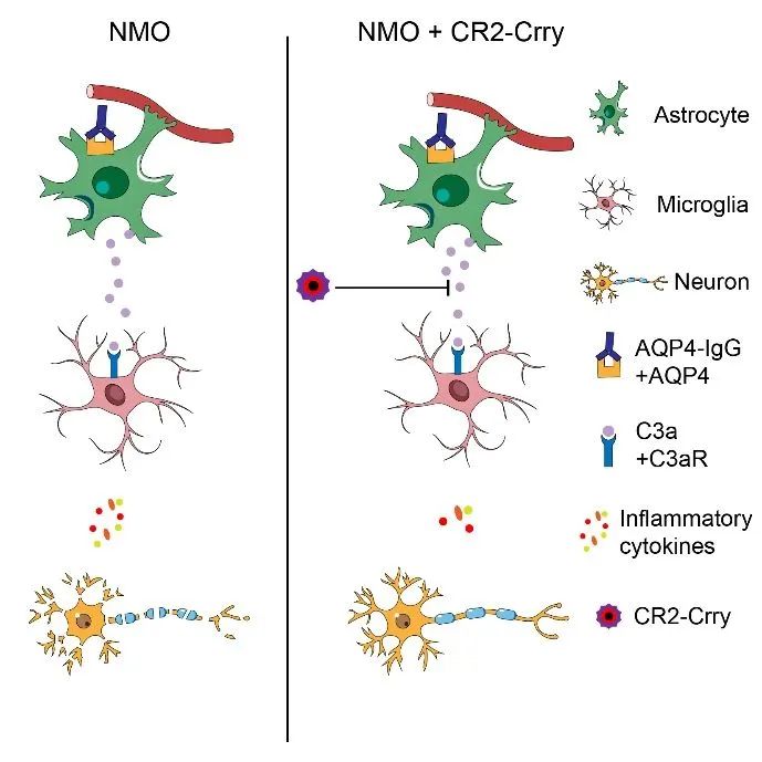 本研究从多层次确定了C3信号通路在NMOSD发生发展中的关键作用,抑制C3信号通路有效减轻了脊髓和视神经的炎性病变,并显著改善了动物模型的运动和视功能障碍。该研究结果不仅对深入认识补体介导的NMOSD发病机制及靶向C3信号通路的精准化治疗提供了理论依据,也为其他C3信号通路参与的自身免疫性疾病提供了新的研究靶点。