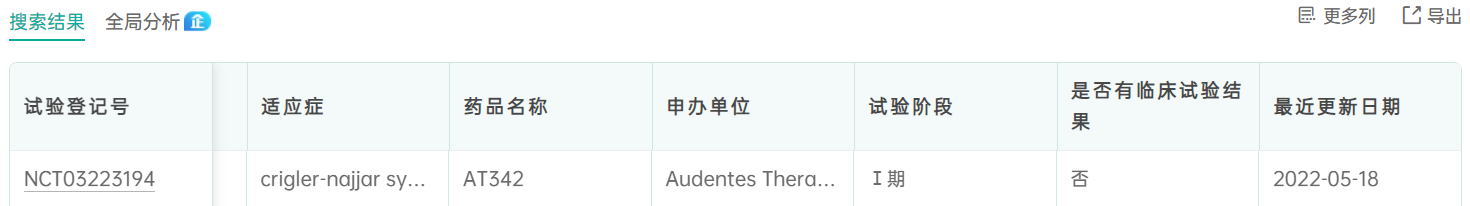 目前另一个针对CN的临床试验是Astellas公司旗下Audentes研发的AT342,这是一种携带正常的UGT1A1基因的AAV载体。在该疾病的小鼠模型的临床前数据可知,Audentes使用单剂量的AAV-UGT1a1注入小鼠体内,小鼠体内的血清胆红素表现出持久的降低。血清胆红素水平是一个重要的临床检测标志,它可以直接检测AT342的易用性和可靠性。