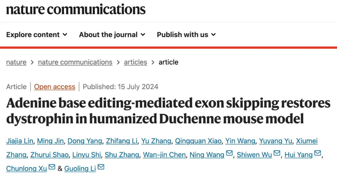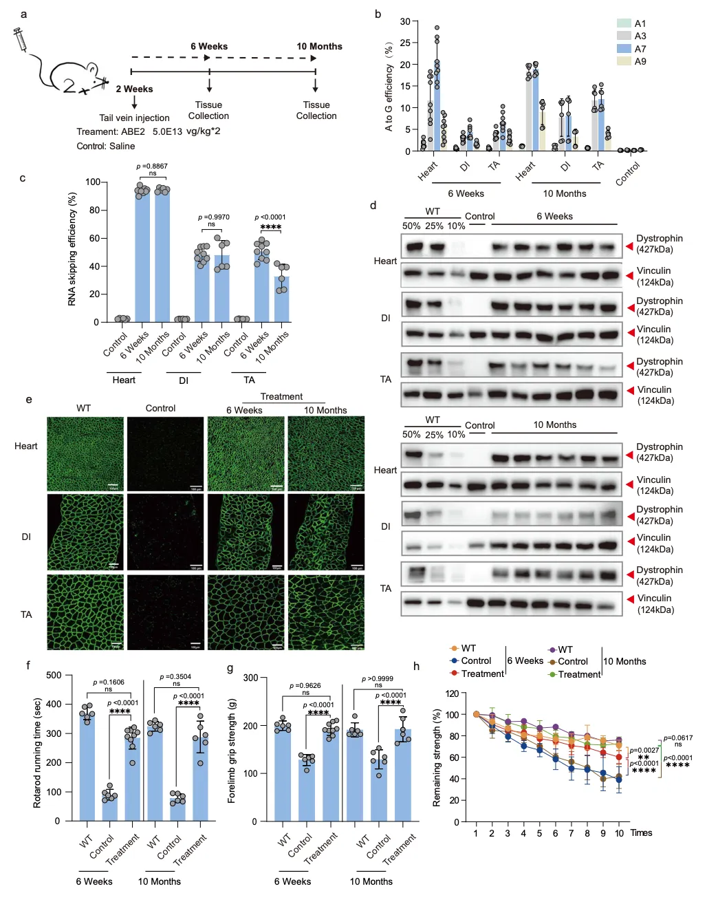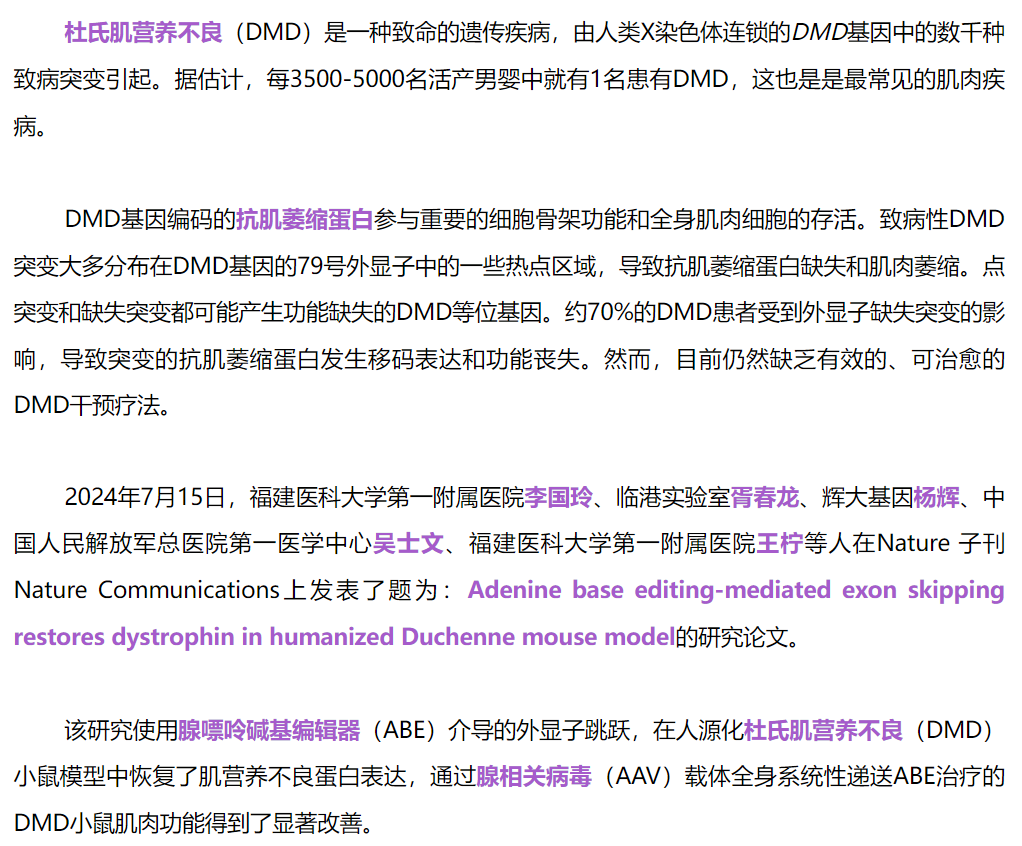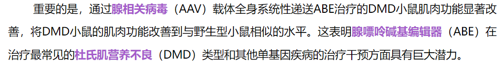 文献分享 | Nature子刊:AAV递送ABE使得人源化DMD小鼠模型的肌肉功能得到了显著改善