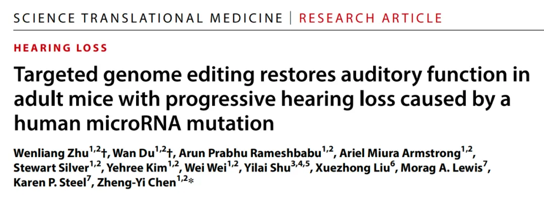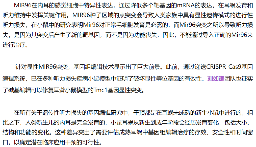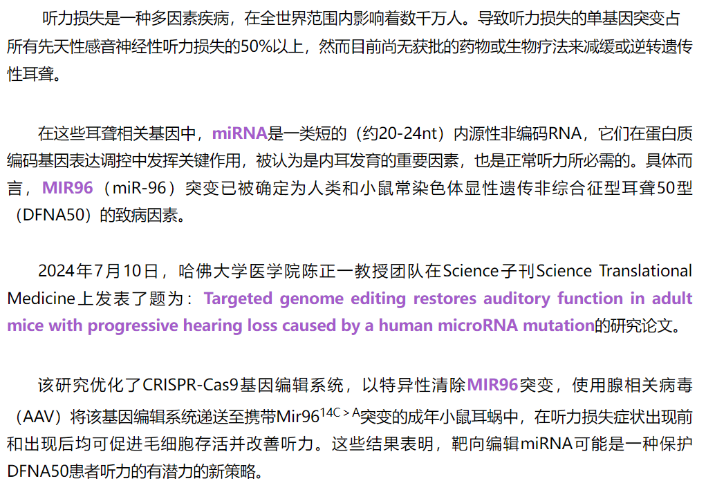 文献分享 | Science子刊:靶向miRNA的基因编辑疗法治疗遗传性MIR96突变耳聋的研究进展