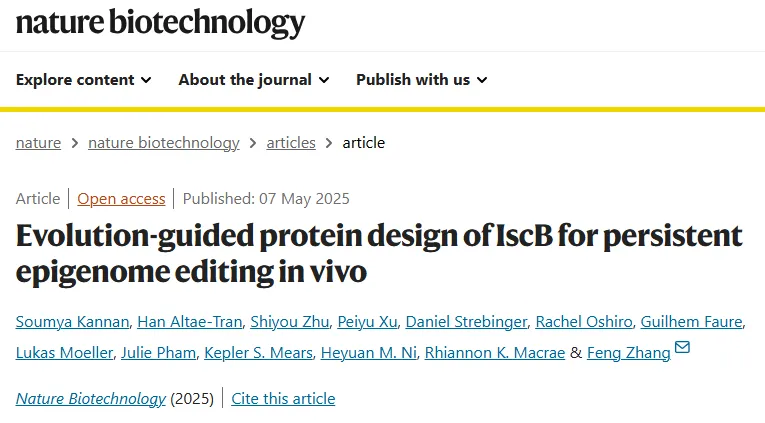另外,2025年2月27日,博德研究所张锋团队在Science 在线发表题为“TIGR-Tas: A family of modular RNA-guided DNA-targeting systems in prokaryotes and their viruses”的研究论文,该研究从Cas9的引导RNA相互作用域开始,通过迭代的结构和序列同源性挖掘,在噬菌体和寄生细菌中鉴定了一个RNA引导的DNA靶向蛋白家族。每个系统由串联间隔引导RNA (TIGR)阵列和含有Nop结构域的TIGR相关(Tas)蛋白组成,有时融合到HNH (TasH)或RuvC (TasR)核酸酶结构域。该研究发现TIGR阵列被加工成36-nt RNA (tigRNAs),通过串联间隔器靶向机制直接序列特异性DNA结合。TasR可以被重新编程以进行精确的DNA切割,包括在人类细胞中。TasR的结构显示出与盒C/D snoRNPs和IS110 RNA引导转座的惊人相似性,为了解各种RNA引导系统的进化提供了见解。
