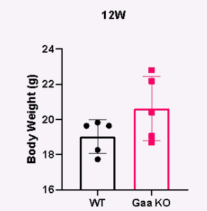 12周龄的Gaa KO小鼠的体重高于野生型小鼠。