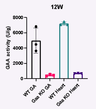 图8 12周龄纯合雌性Gaa KO小鼠和野生型(WT)小鼠的心脏和腓肠肌的GAA活力检测(n=3)